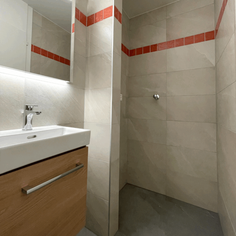 Grosch a veillé à ce que chaque salle de bain reflète une harmonie visuelle tout en possédant sa propre identité, utilisant des palettes de couleurs apaisantes, des luminaires soigneusement choisis et des finitions de qualité supérieure. Les matériaux sélectionnés, résistants à l’eau et faciles à entretenir, garantissent que ces espaces resteront beaux et fonctionnels au fil du temps. Cette rénovation à Avusy illustre parfaitement comment des espaces bien conçus peuvent améliorer significativement la qualité de vie, en créant des lieux de détente et de bien-être au sein de l’appartement.